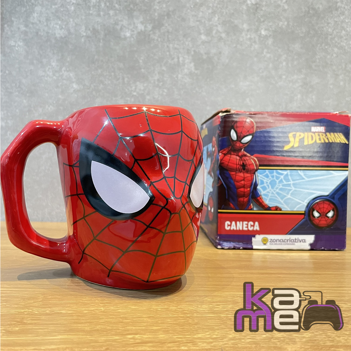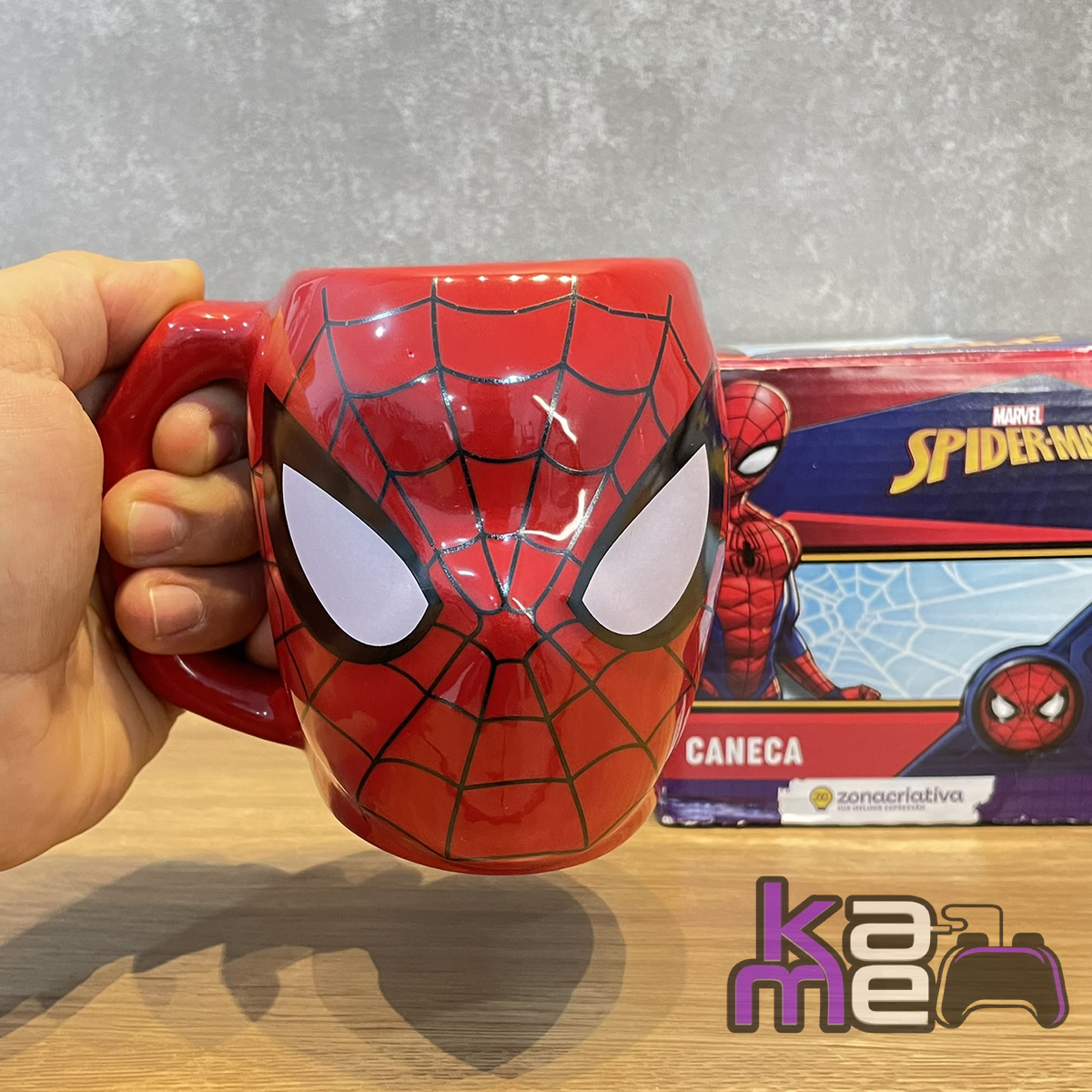 Produzida em porcelana de alta qualidade, a caneca possui acabamento premium e um design diferenciado em formato 3D, ideal para fãs de cultura geek e super-heróis. Além de funcional, também é uma excelente peça decorativa para cozinhas, escritórios ou setups.